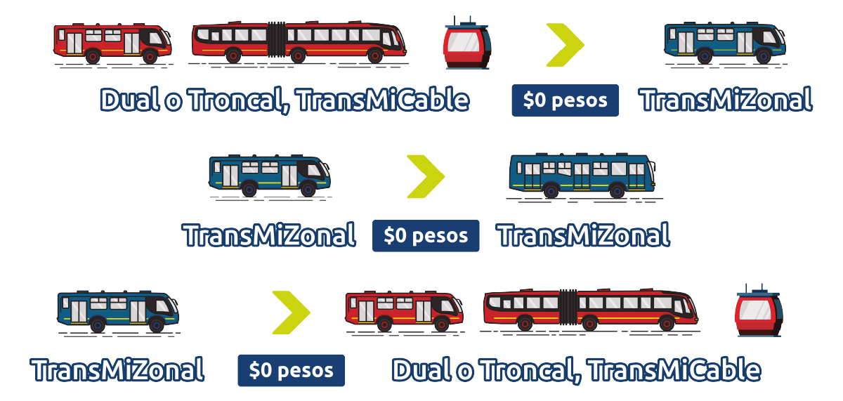 - Los transbordos no aplican efectuándose de la siguiente manera (Trocal- Zonal-Troncal).