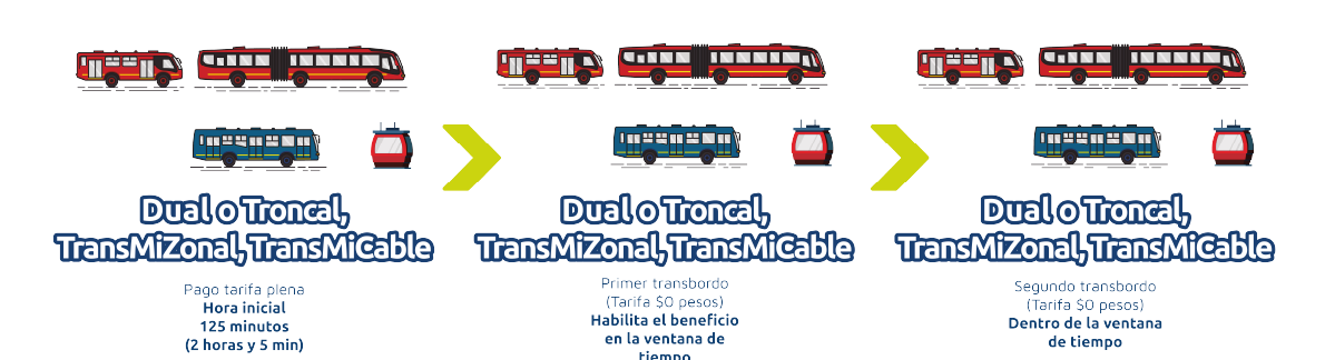 El beneficio aplicará una vez el sistema registre el primer transbordo (Tarifa $0 pesos), contando como hora inicial la validación pagada a tarifa plena (tarifa $3.200 pesos), habilitando la ventana de tiempo de los 125 minutos (2 hora y 5 minutos).