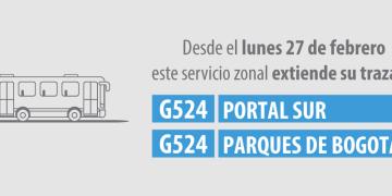 Ruta G524 Portal Sur - Parques de Bogotá extiende su trazado     Compartir   A partir...